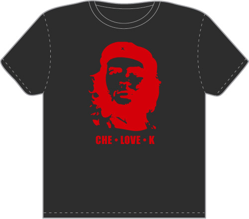Че любит тебя!А если у тебя, или у человека для которого заказывается футболка, имя начинается на букву "К" (Катя, Костя, Казимир, Карина, Клава ...), то это 100% попадание.А еще Че может любить Клей, Квас, Картошку, Клинское ...